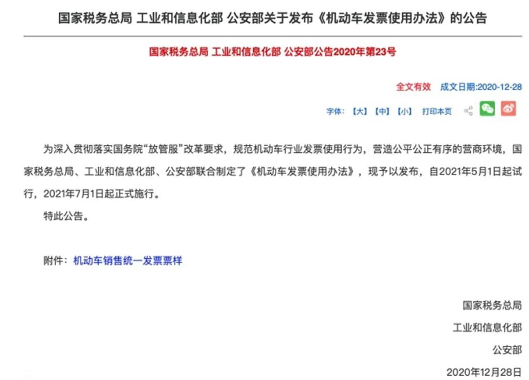与此同时,从今年7月1日起,“一车一票”制开始面向全国实行。此举将使得各地制造厂商和销售商无法在发票环节进行偷税漏税,保障税收不会流失,也让消费者可以通过小小的发票掌握所购车辆的所有信息,保障其切身利益。